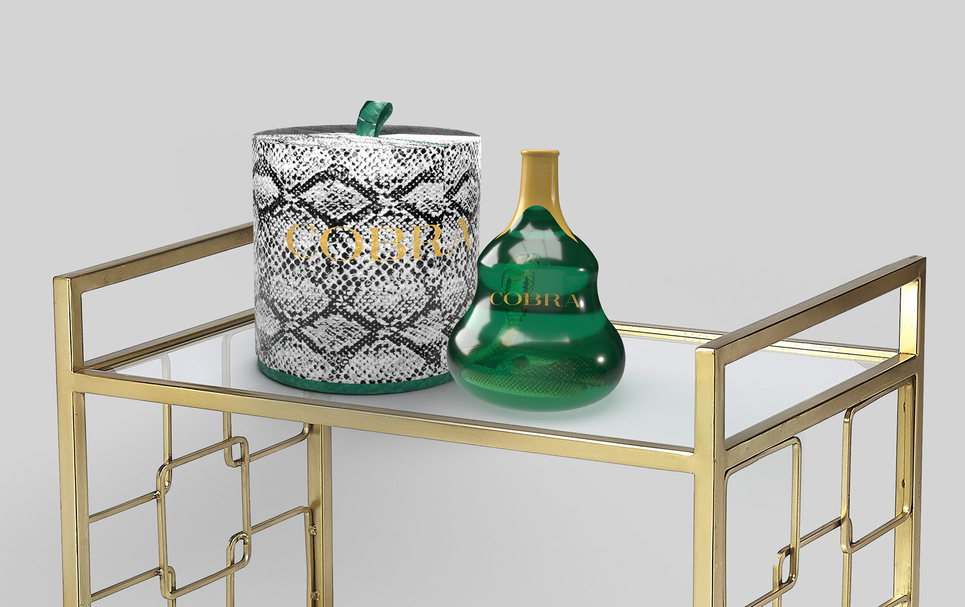 With every purchase of Cobra, comes a set of drinking glasses that are dipped in a similar gold wax to the bottle and have a gold foil brand mark.